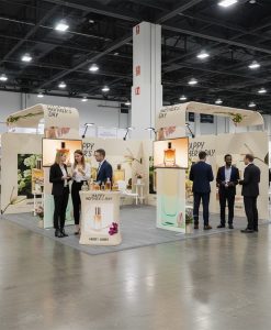 This exhibit booth is engineered for dynamic media integration. Two L shaped displays with TV mounts allow for simultaneous presentation of videos and interactive content, while the counter facilitates client consultations and lead capture. The 6 magnetic banner stands create a seamless backdrop, featuring high-quality, wrinkle-free dye-sublimation graphics. Crucially, four 40W LED lights are strategically included to intensely illuminate the main banner stands, guaranteeing your marketing message is always highly readable and impactful.