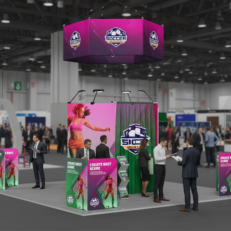 20×20 Hexagon Trade Show Booth: High-Visibility Hanging Sign & LED Lighting System