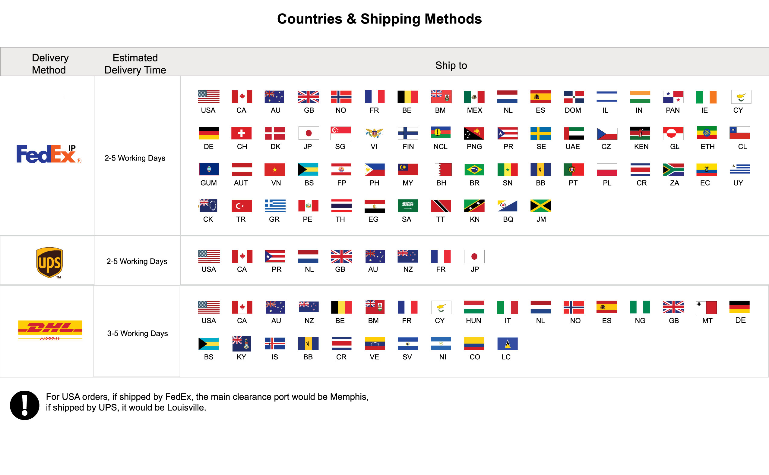 Most of our Custom Textile Products we can ship to those countries listed below. Items shipped internationally are limited to Tradeshow and Event items, Custom Printed Flags & Banners and Display Items. If you are needing a product and are unsure if we ship to your designated country, please contact our office.